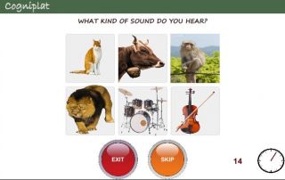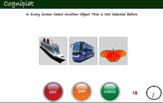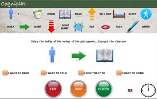The second cognitive domain focuses on attention with the use of exercises that request, for example, to replace words or phrases with images or image sequences and identifying objects displayed on the screen.